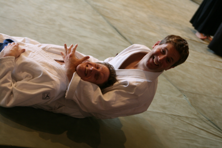 Was doch immer wieder super an solchen Lehrgängen ist, dass man Freunde, aber auch neue Aikido-Begeisterte trifft. Außerdem hat man die Chance, mit vielen unterschiedlichen Personen zu trainieren. Ich glaub, bei mir waren es mehr als 20. Wie uns Meister Heymann auch noch mal berichtete, kann der Kopf zwar viele Details aufnehmen und speichern, allerdings ist der Körper erst nach jahrelanger Übung in der Lage, gespeichertes wissen auch sehr gut umzusetzen. Dabei helfen solche Lehrgänge und immer wechselnde Trainingspartner ungemein. Da bleibt nur zu sagen, trainieren, trainieren, trainieren…