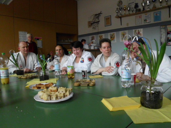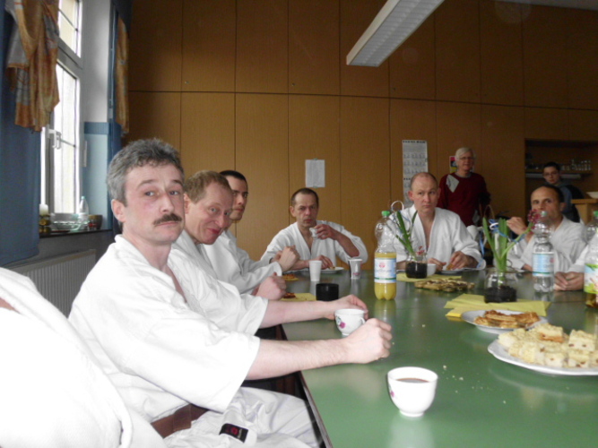 Die Pause wurde auch am Sonntag dazu benutzt, um Fragen zu beantworten. Wir haben die Trainingseinheit genutzt, um die 1 Kata zu komplettieren. Zum krönenden Abschluß versuchten sich die Schüler sich an Juji-garami. Alles in allem, haben wir einen Dan-Vorbereitungslehrgang mit einer ” Super Gruppe “ gehabt.