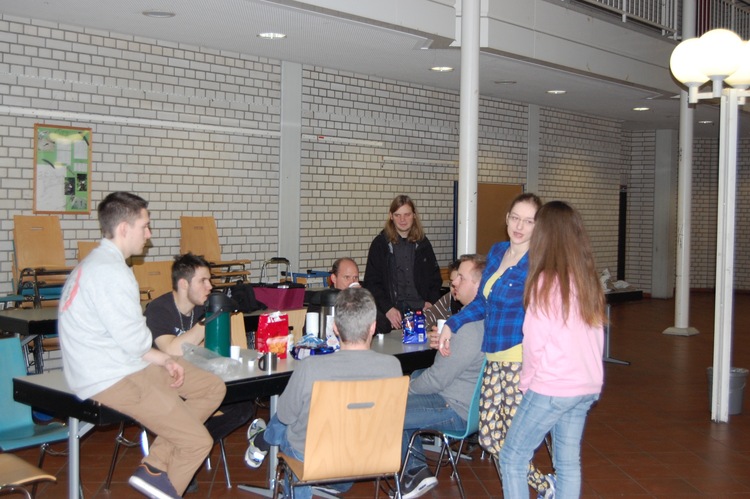 Der Mattentransport ist vollbracht. Dank der vielen Helfer ging es auch ziemlich zügig über die Bühne. Im Anschluss haben wir noch gemütlich mit Kaffee und Keksen über viele interessante Themen gesprochen. Vielen Dank für eure Hilfe!
