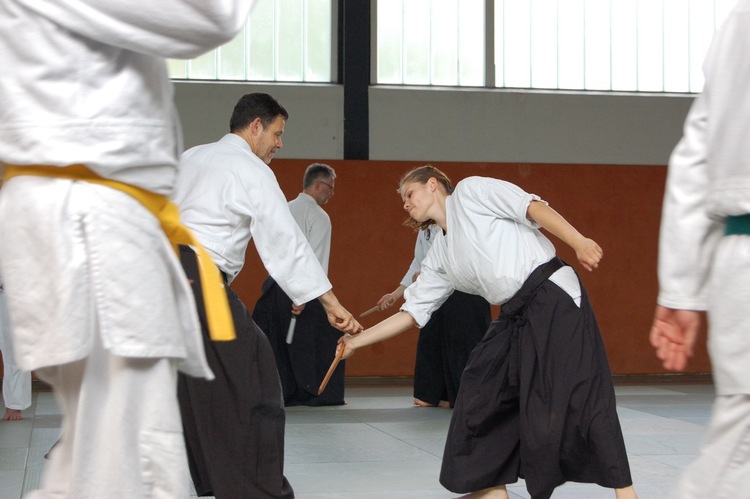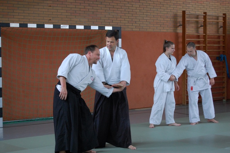 Thomas Walter (4. Dan) hat an zwei Tagen sein Verständnis vom Aikido gezeigt und gelehrt. Trotz des sehr warmen Temperaturen, haben die Teilnehmer Spaß gehabt.